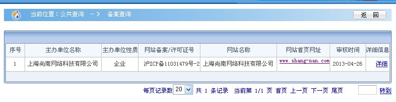 點擊后面的“詳細(xì)”,并且輸入驗證碼后,可以查詢某條具體記錄的詳細(xì)內(nèi)容,如下圖